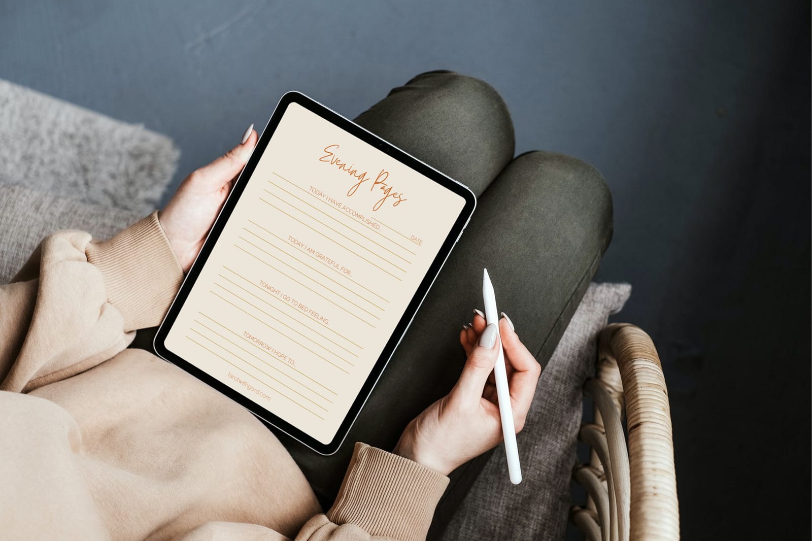 Download the PDF and open it on your iPad or print it out. Use it at the end of the day as part of your wind down routine. Answer each prompt honestly, then use the free writing page to empty your thoughts so you can rest with more clarity and calm.