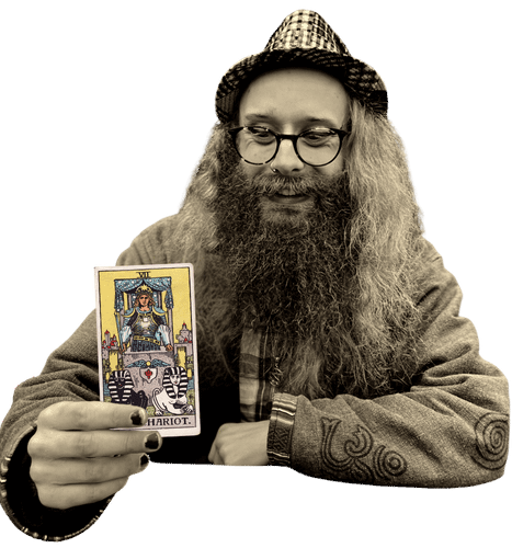 The Chariot is about balance as you try to move forwards. If one wheel's moving faster than the other, you just go round in fucking circles. I see this when someone's got all the drive but no direction, or direction but no follow-through. Book a tarot reading to work out what needs balancing.