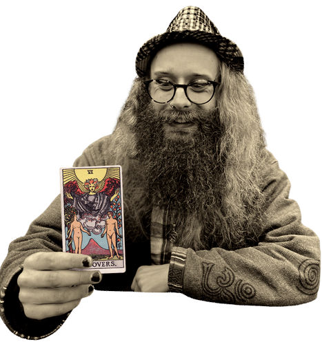 A lot of people think the Lovers is about romantic relationship bollocks. I don't see it like that. In some decks it's depicted as somebody facing a version of themselves, their shadow self, their astral self. It's about loving the parts of yourself that other people don't see. Loving the dark side of yourself. Calling forth the truest version of who you are and loving that. When it comes out reversed, it's usually a sign you just really don't fucking love yourself. There's a block there.