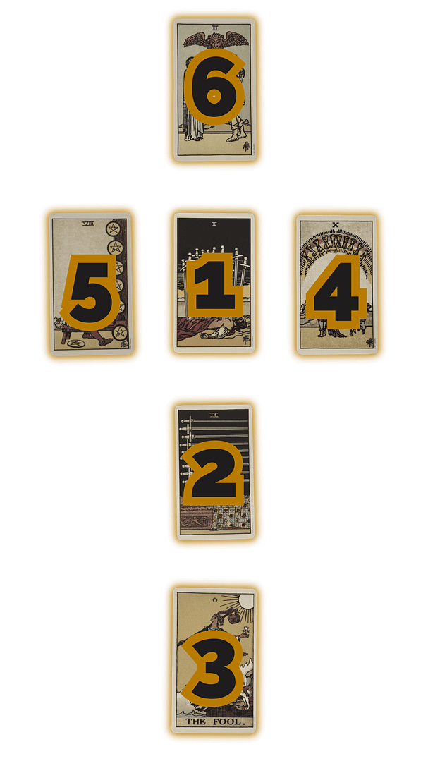 This spread is designed to help you navigate the complexities of sexual and emotional desires. Each card delves into different facets of your sexuality, guiding you toward a more authentic and fulfilling self-expression. By uncovering hidden desires and removing communication barriers, you build a deeper understanding of yourself and create space for greater intimacy. Embracing these insights allows you to pursue a more vibrant and connected sex life.