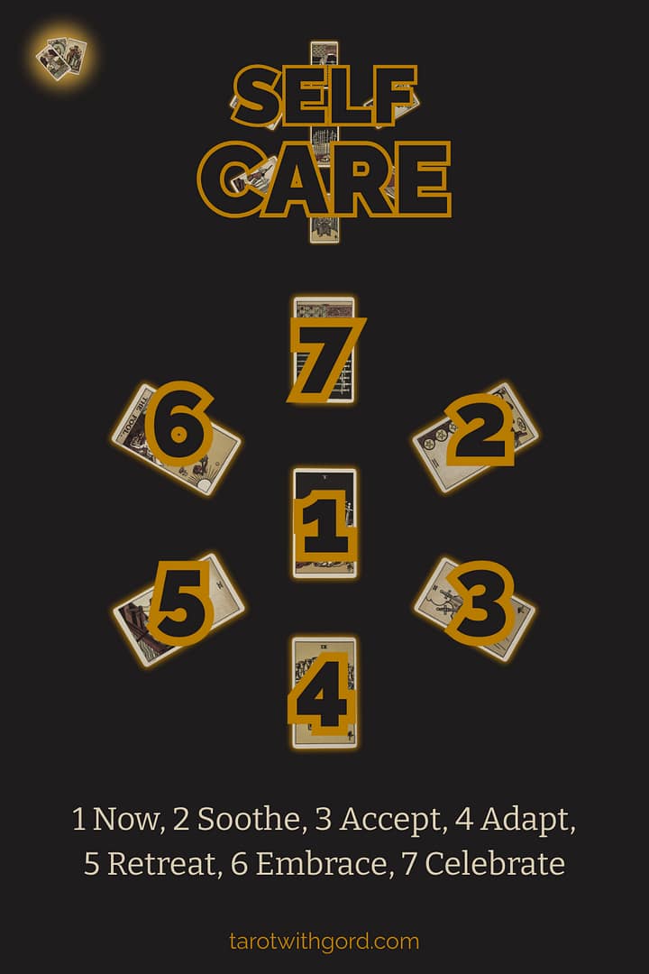 This seven card self care spread evaluates your emotional, physical, mental and spiritual wellbeing. Each card shows what needs soothing, acceptance, adaptation, retreat, embracing and celebrating, guiding you to recognise and nurture yourself in a balanced, loving way.